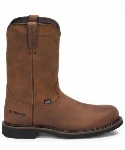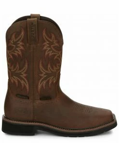 Show off your fun cowgirl style even while on the job in a pair of Gypsy boots by Justin! These fashionable western boots are made of genuine waterproof leather with an embroidered shaft and stitched pull straps. A classic saddle and toe stitching adorn the vamp. These women’s work boots feature a durable rubber outsole and protective steel toe.