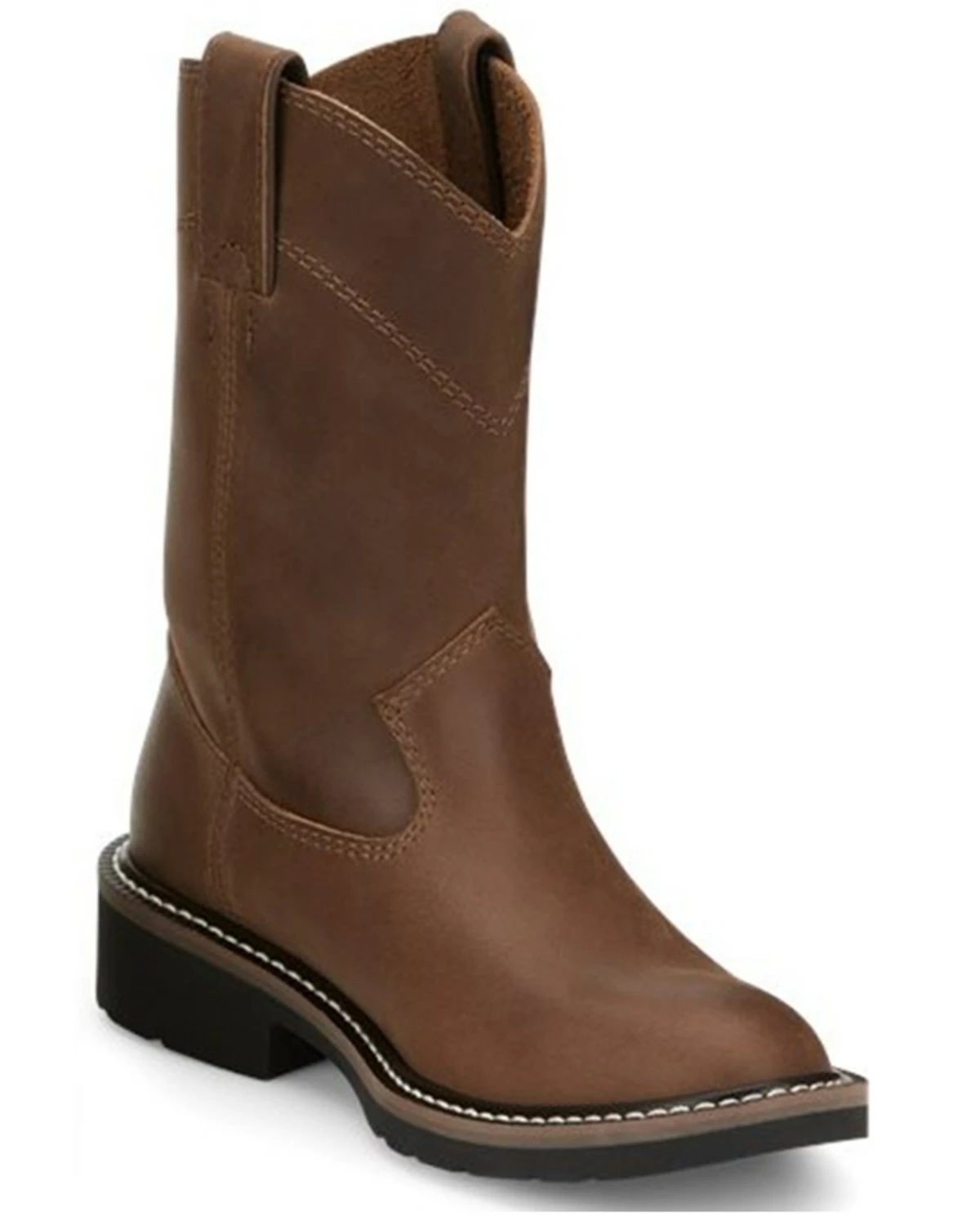 Justin Kids’ Brown Roper Western Boots – Round Toe For Unisex-Kid