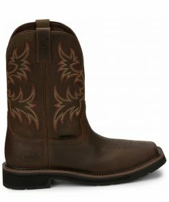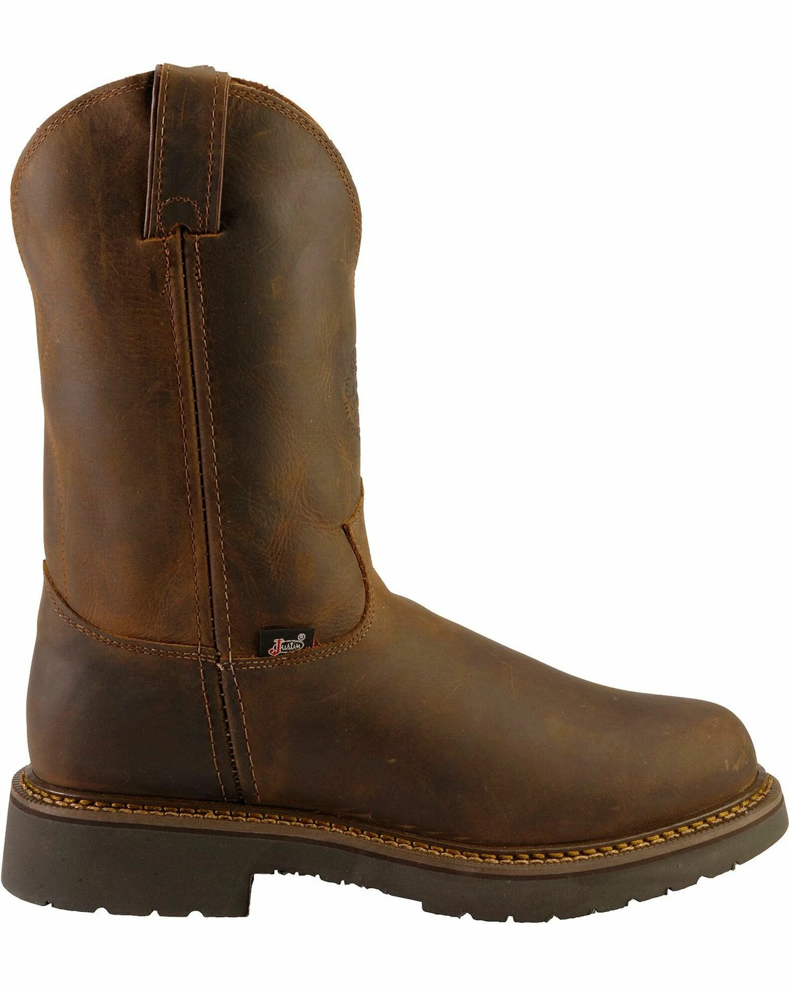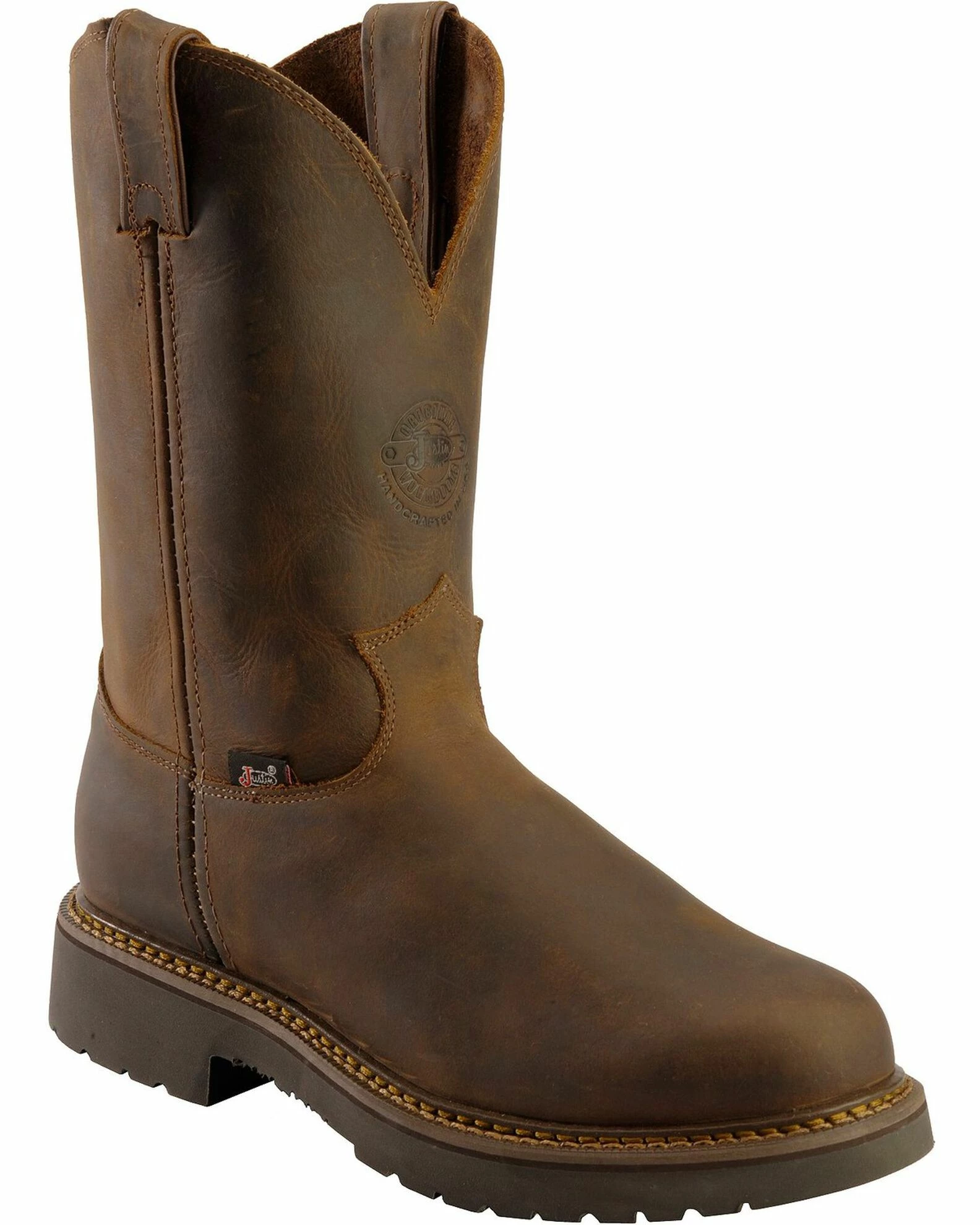 Your feet will be in complete comfort with the J-Max double comfort system and removable Justin Jel insert that provides stability and durability for hours of wear. The J-Max polyurethane sole and elastomer heel and foreparts provide traction and durability while moving around the job site. Justin Boots provides quality craftsmanship and set the standard for boots of the west, making some of the most durable and comfortable boots around. You can count on Justin for great boots with the finest leathers and the latest styles.