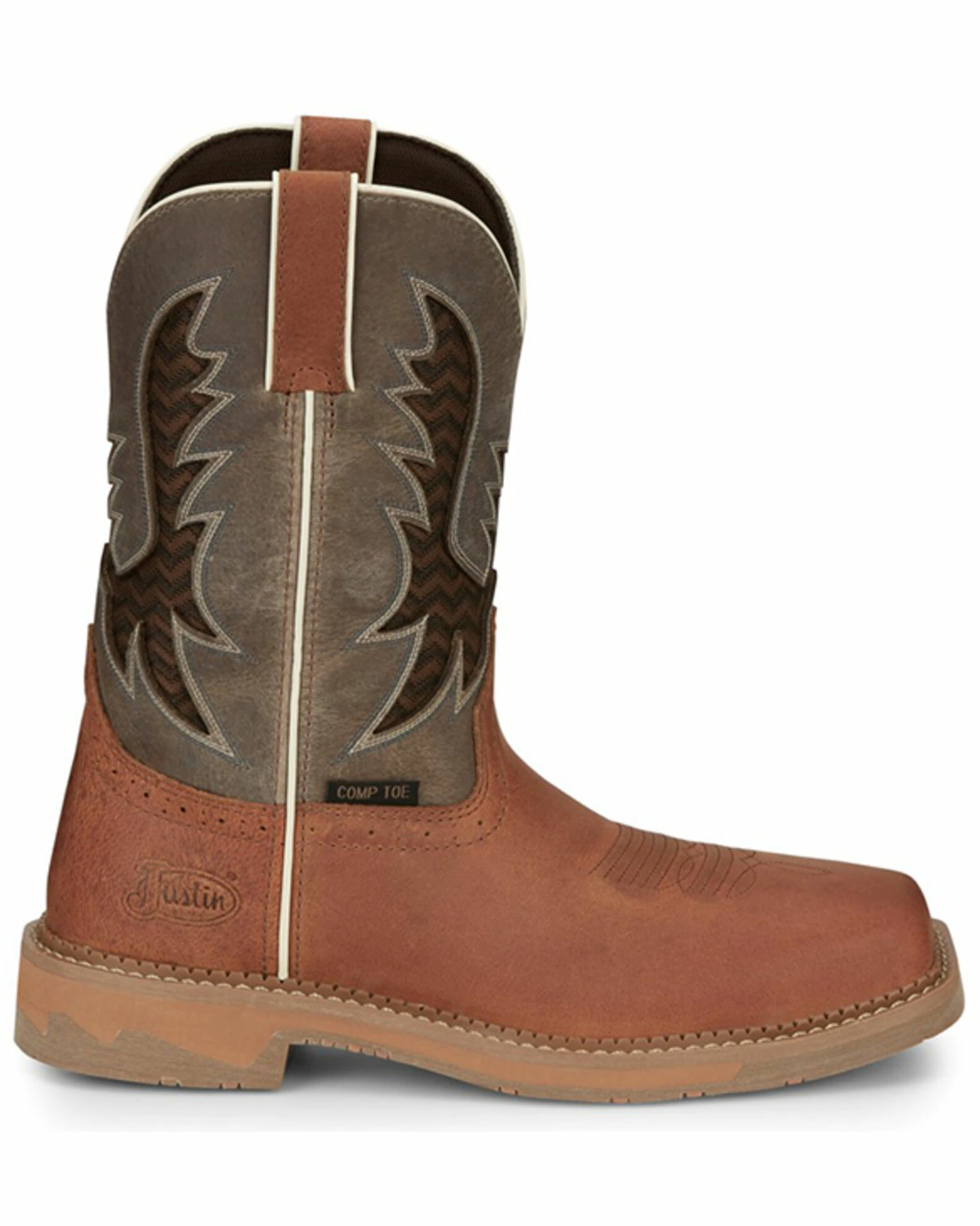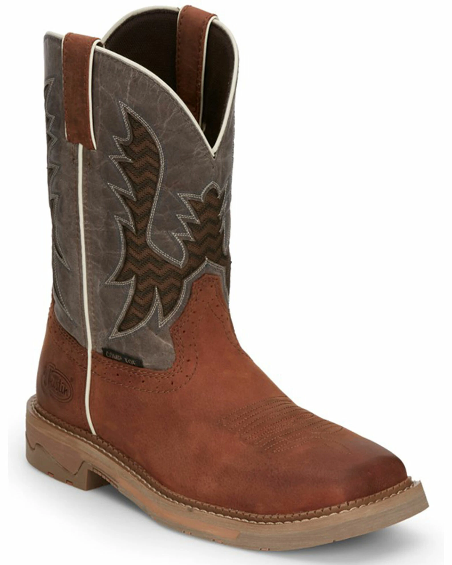Justin Men’s Bolt Redwood Pull-On Soft Work Boots – Square Toe