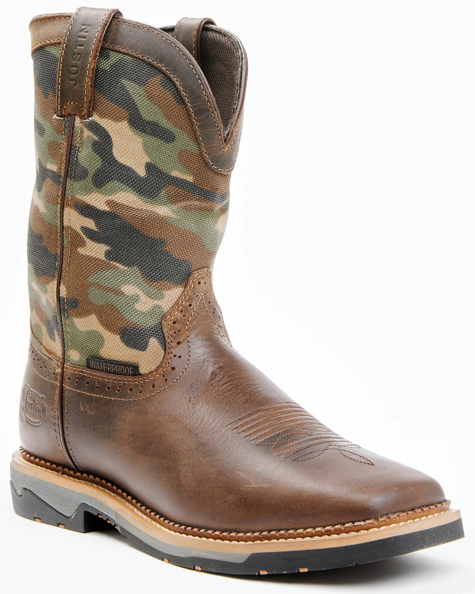 Justin Men’s Bolt Waterproof Western Work Boots – Square Toe