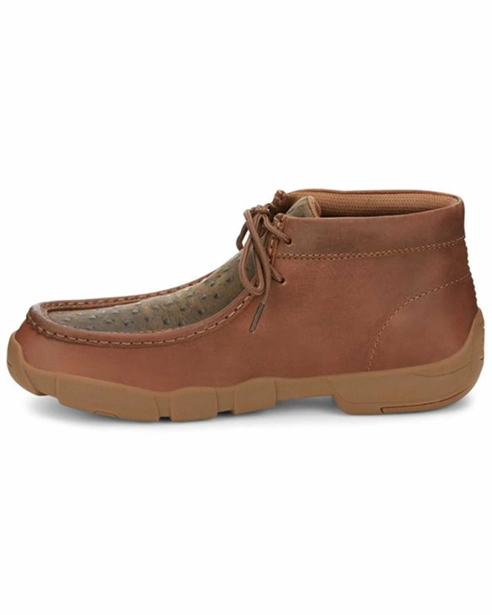 Justin Men’s Cappie Brown Cowhide Leather Ostrich Vamp Casual Lace-Up Shoe – Moc Toe