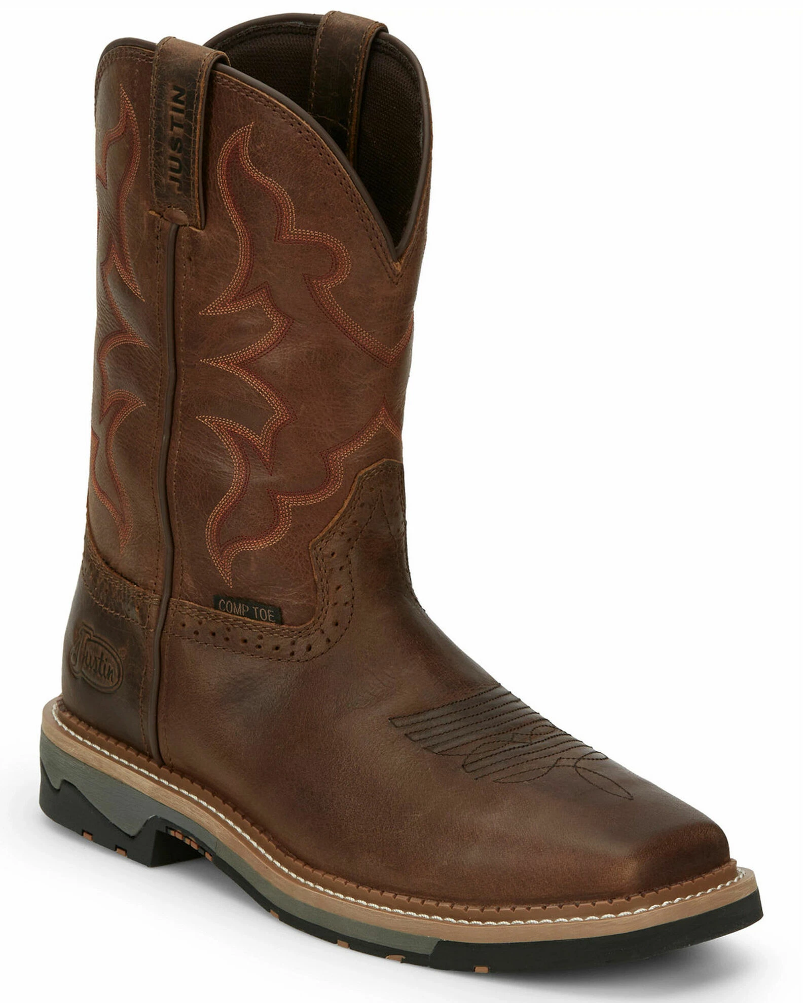 Justin Men’s Carbide Western Work Boots – Composite Toe Brown