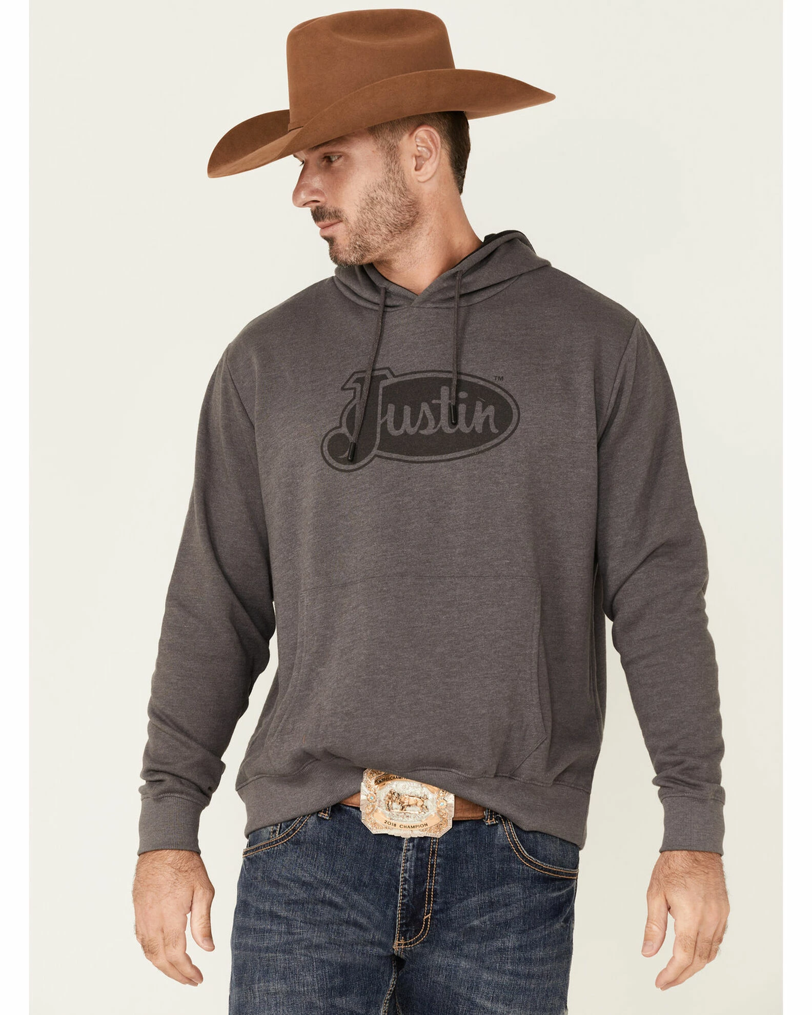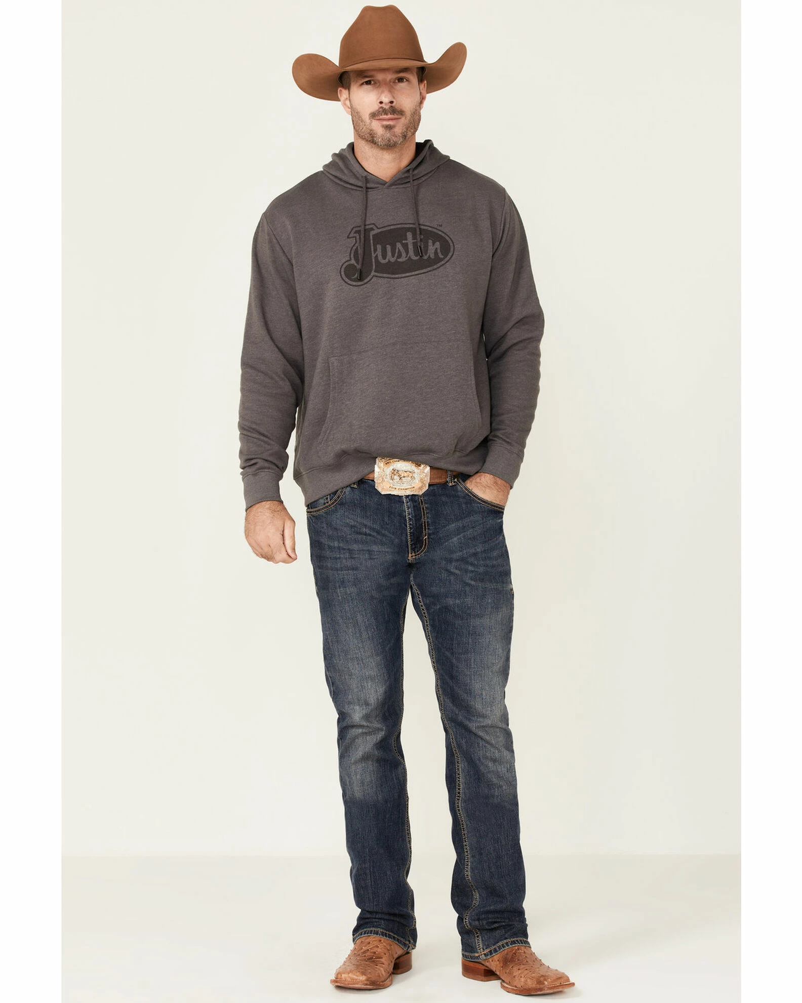 Justin Men’s Charcoal Charleston Logo Fleece Hooded Sweatshirt