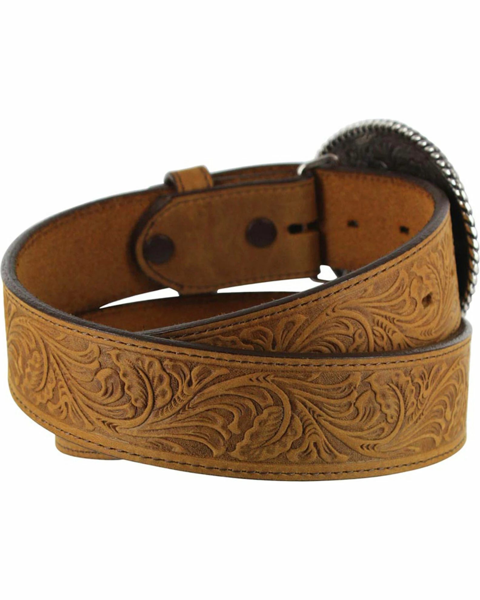 This leather belt with a silver Justin trophy buckle has a classic western look. This belt will put the finishing touches on any western outfit.The full grain leather is durable and flexible for a perfect fit. The buckle is easily and conveniently removable, allowing you to personalize this belt with your own belt buckle. This belt will give you the added western touch to any outfit, paired with jeans or slacks you will look great.
