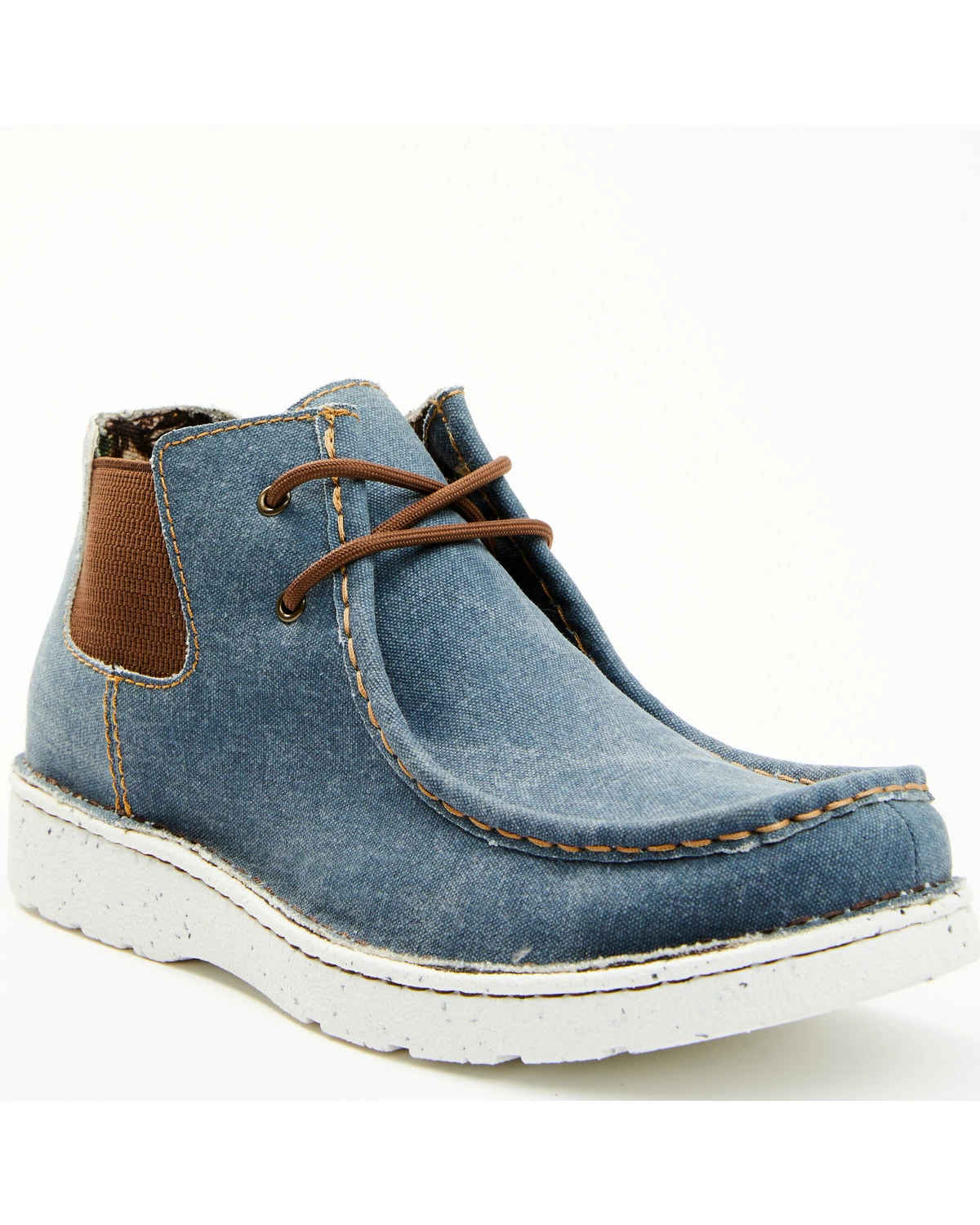 Justin Men’s Hazer Denim Casual Lace-Up Hudson Shoes – Moc Toe Blue