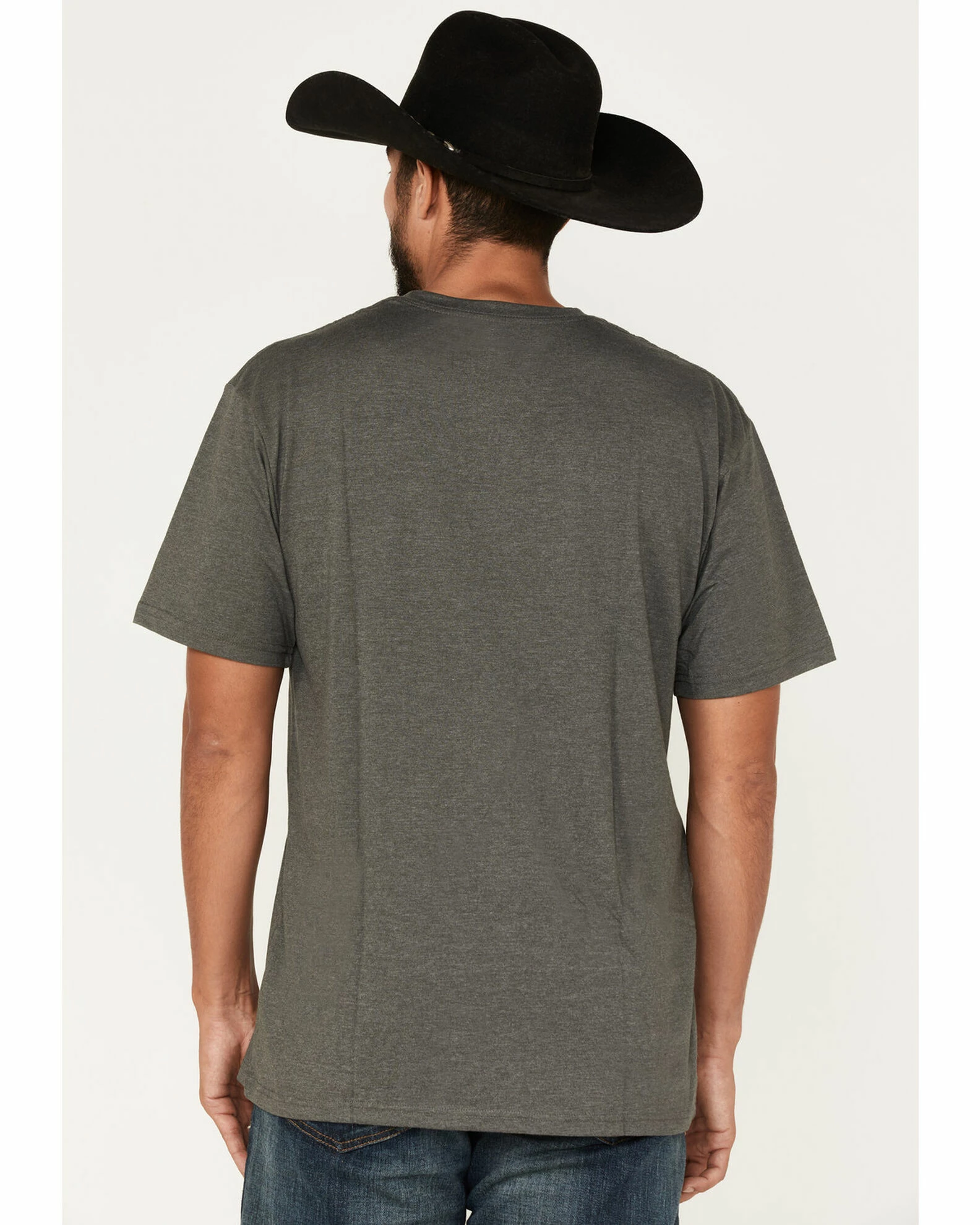 - Heather gray with vintage hexagon logo graphic on chest