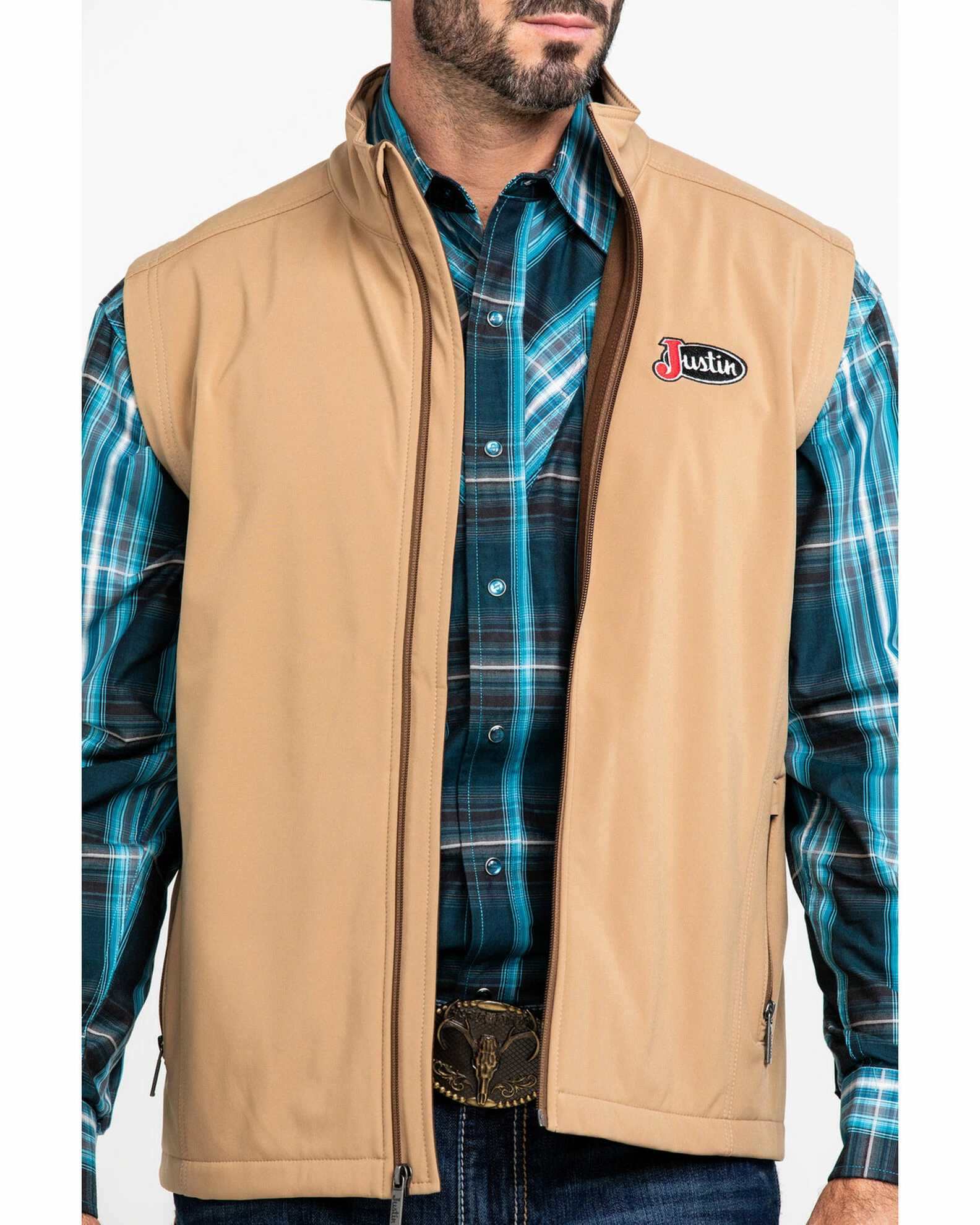 Justin Men’s Khaki Fleece Laminated Vest Beige/khaki