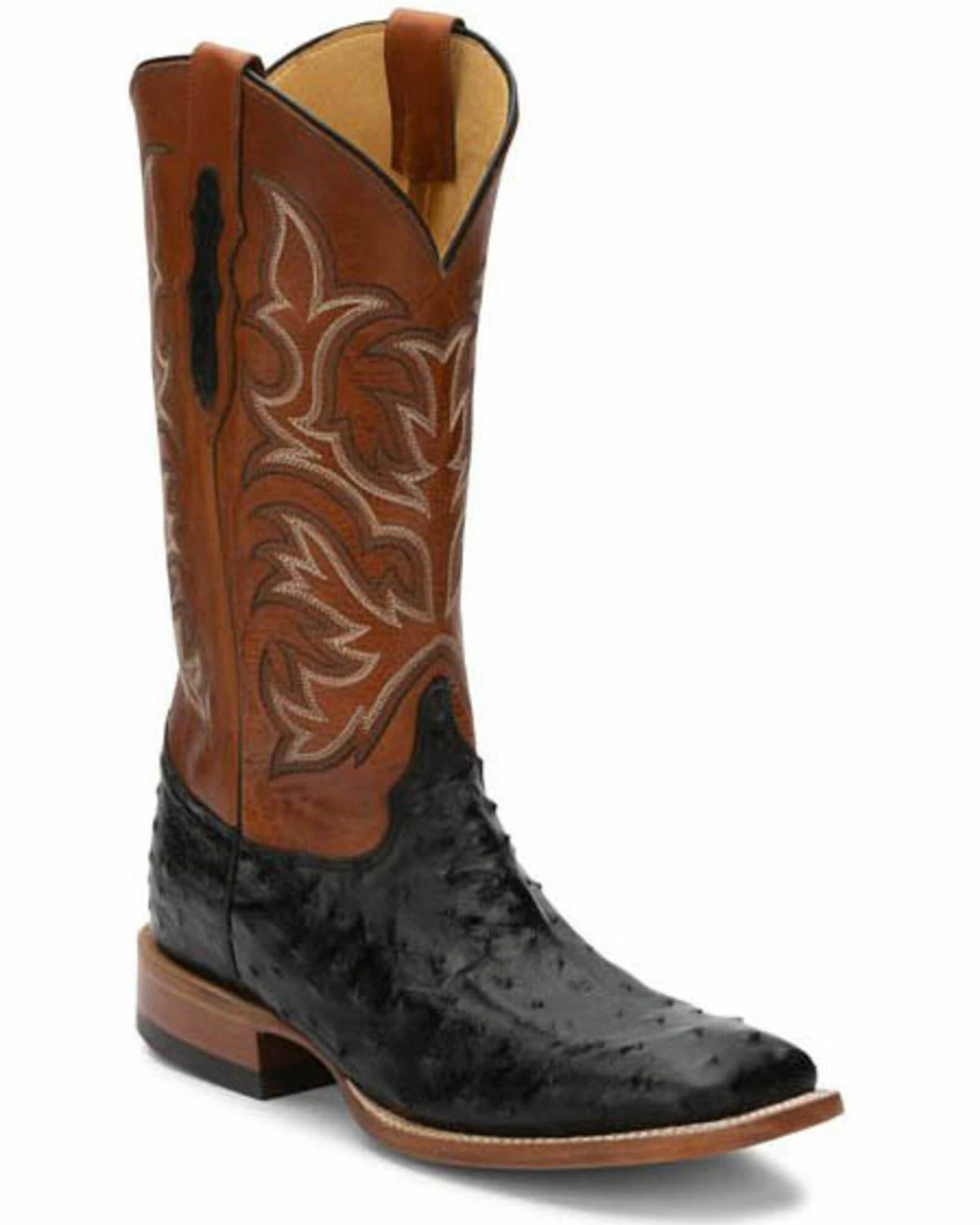 Justin Men’s Pascoe Black Full-Quill Ostrich Western Boots – Wide Square Toe