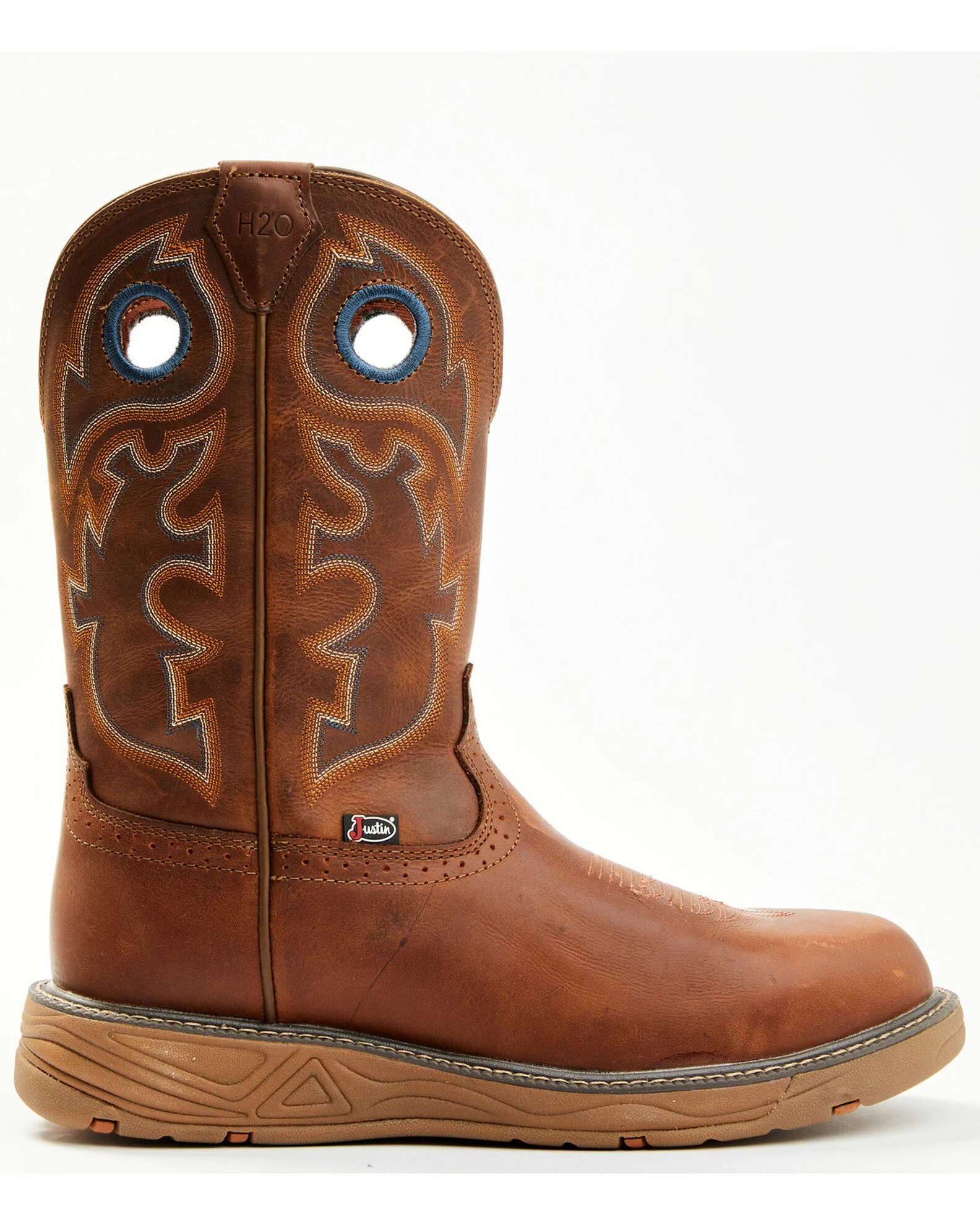 Justin Men’s Rush Barley H20 Pull-On Work Boots – Round Soft Toe