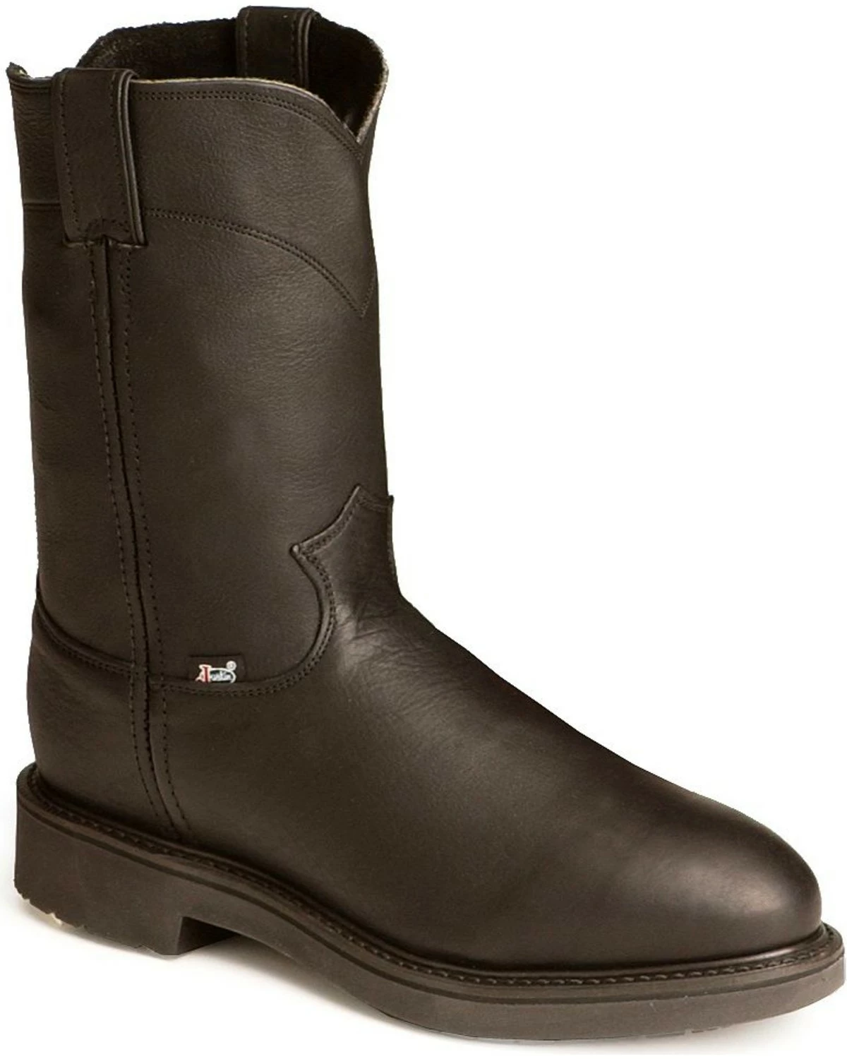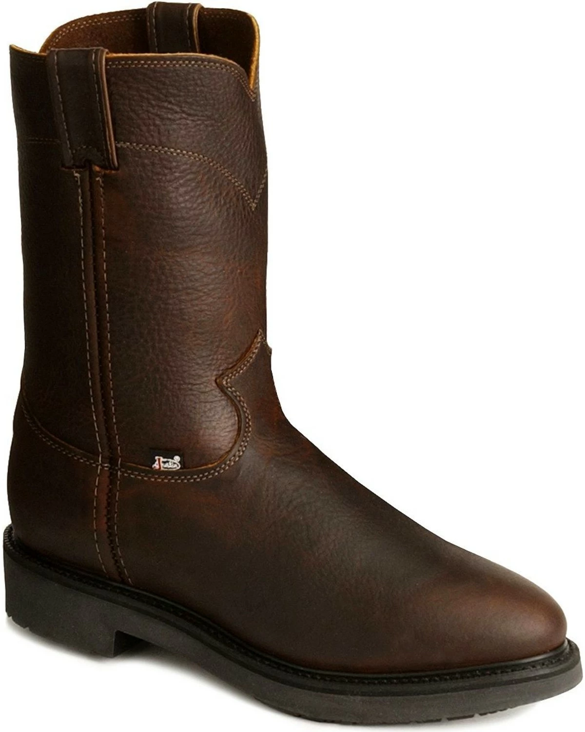 Justin steel toe work boots are made from premium oiled leather. These work boots are designed for unequaled durability and comfort. Be safe and comfortable at work in these Justin boots!