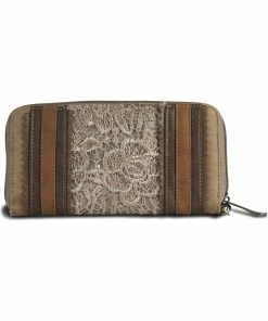 Justin Women’s Floral Lace & Burnished Leather Wristlet Wallet Brown