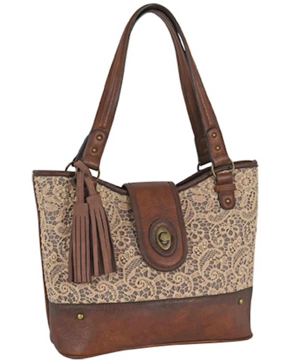 Justin Women’s Floral Lace & Burnished Leather Tote Bag Brown