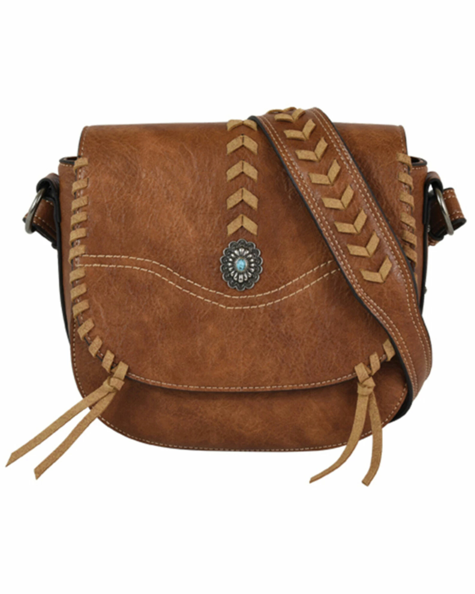 Justin Women’s Laced Trim Crossbody Leather Saddle Bag