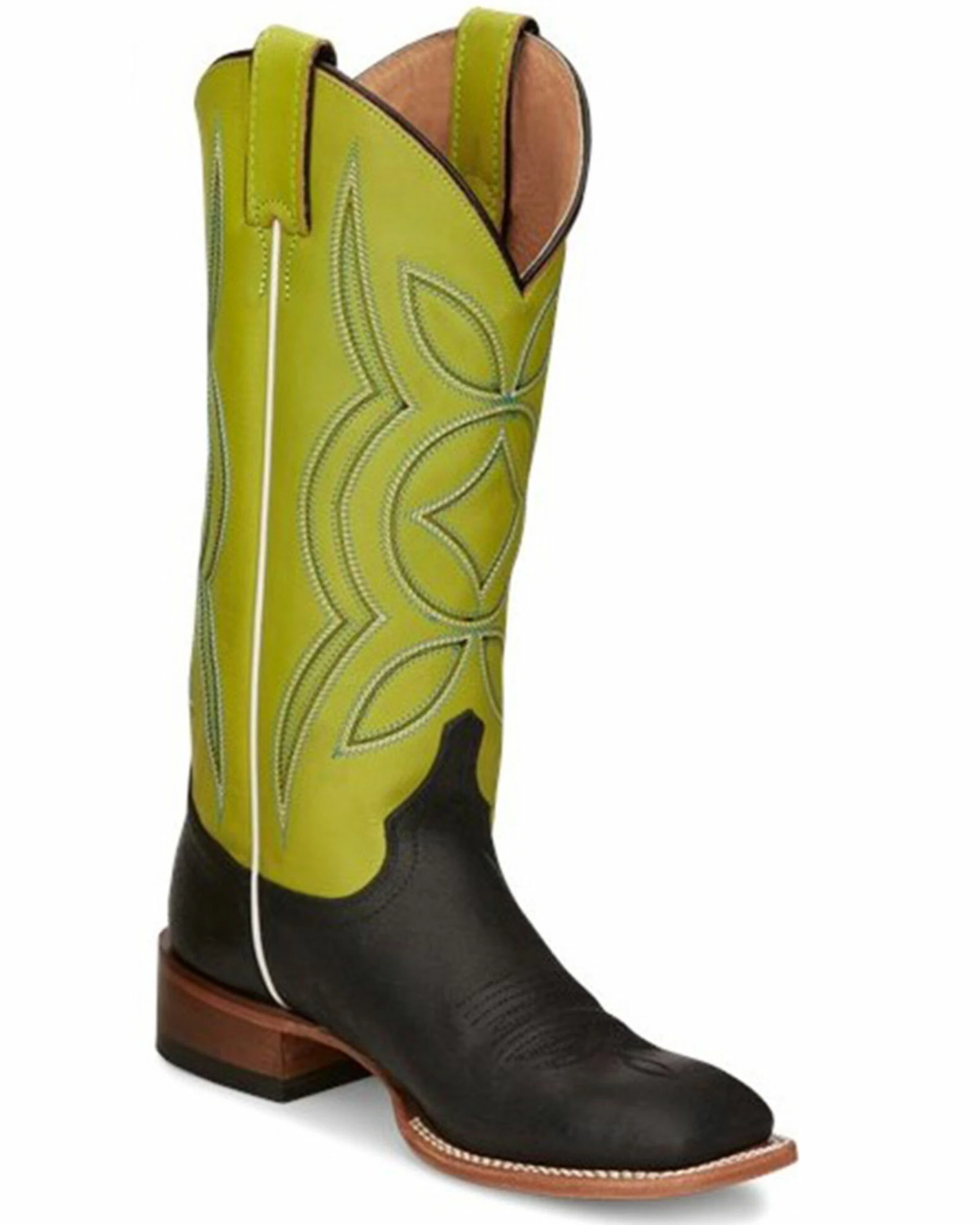 Justin Women’s Minick Lime Green & Dusk Black Cowhide Leather Western Boots – Wide Square Toe
