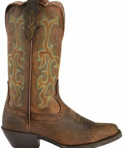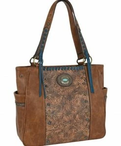 Justin Women’s Floral Lace & Burnished Leather Tote Bag Brown